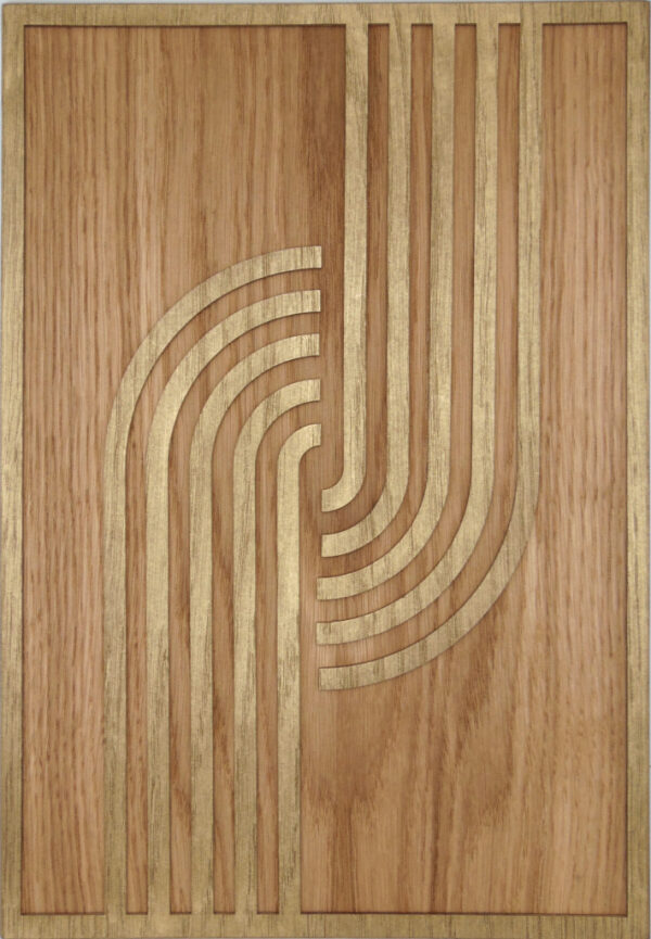 Dębowy obraz Wykonany w technice 3D. Na dębowe tło naniesiony jest złoty wzór w stylu boho, który wystaje ponad tło. Szerokość ramki wynosi 10mm. Całkowita grubość obrazu wynosi 8mm.Rozmiar 30x42cm